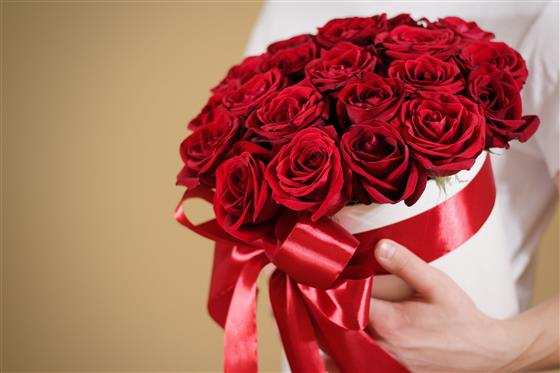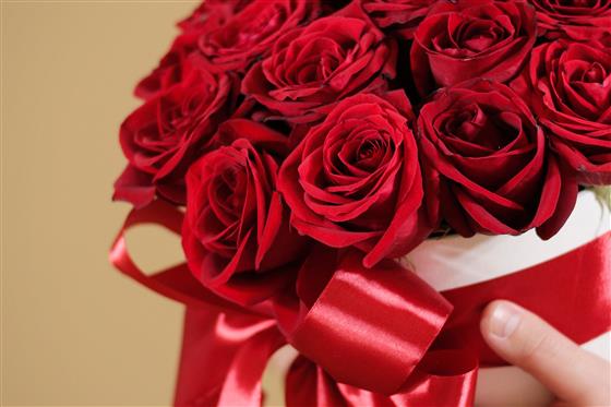 A stunning Red Rose Hat Box arrangement containing 18 of the finest red large headed red roses. NB. We use the finest Naomi Roses for this arrangement, these roses have 'guard petals' they are there to protect the actual rose. Some rose blooms may have a natural black or dark edge which is a natural growing condition.