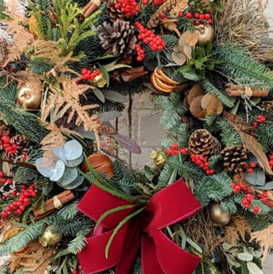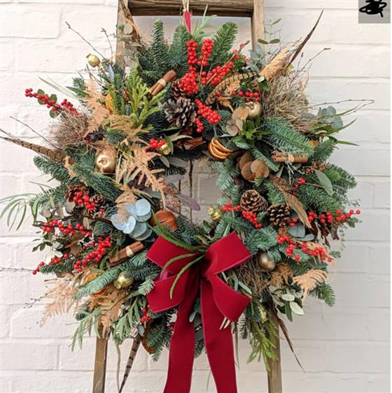 standard is approx 45cm large 55cm. This stunning wreath will make a wonderful first impression. Filled with festive Ilex berries and natural foliages