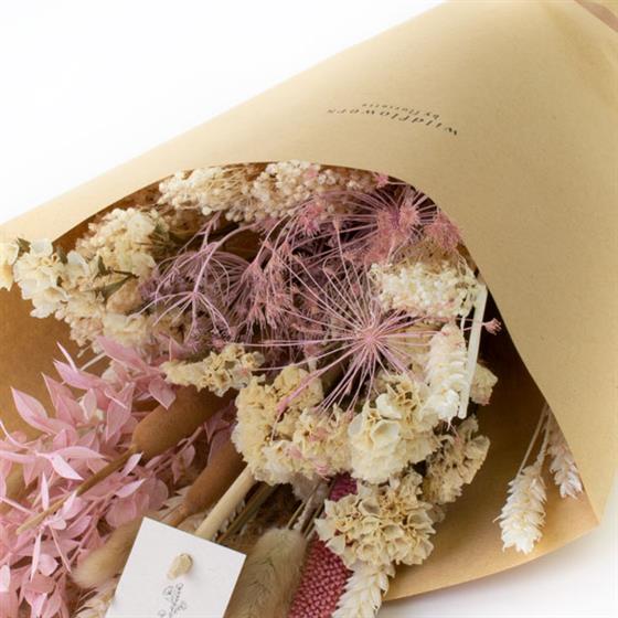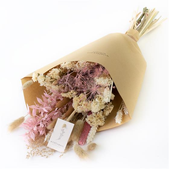 A gorgeous wrap of trendy dried flowers . Bouquet length is approximately 50cm